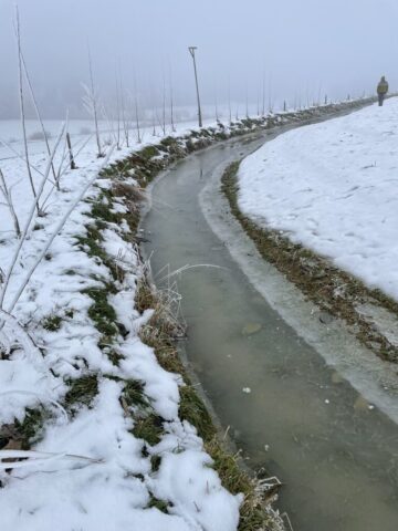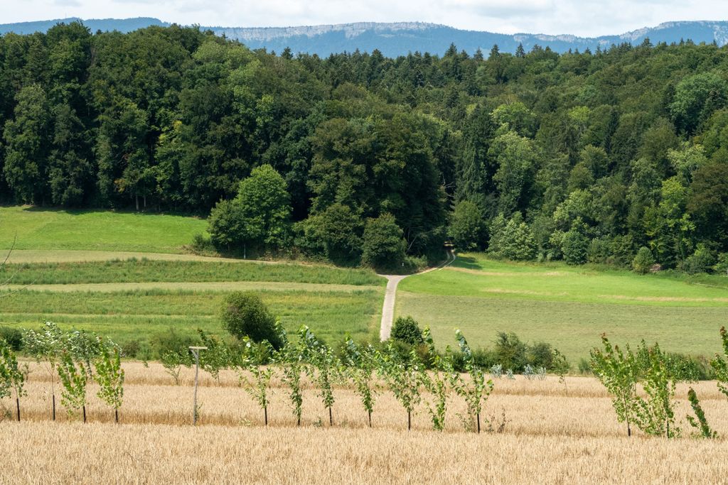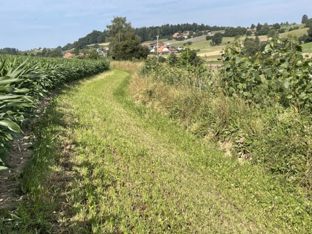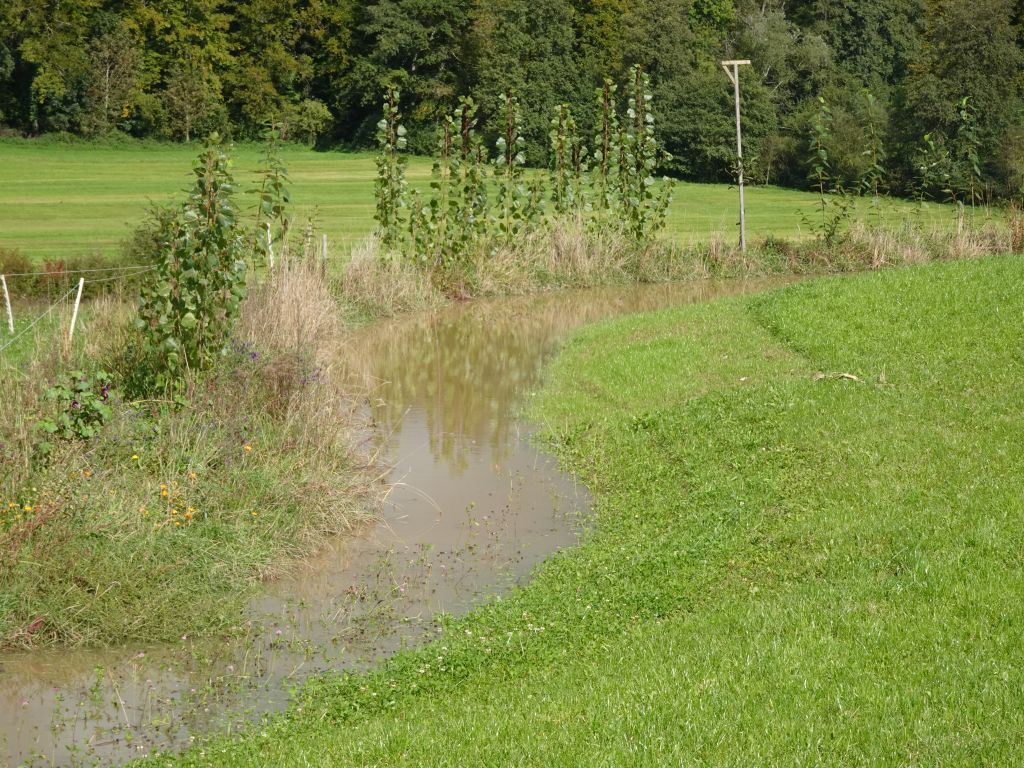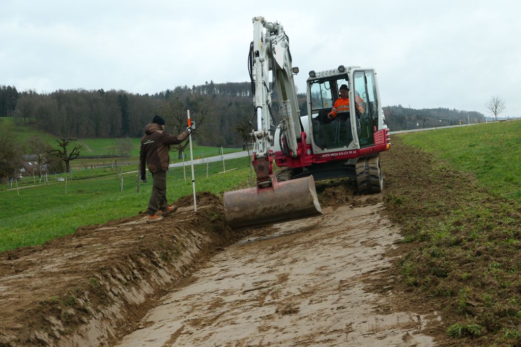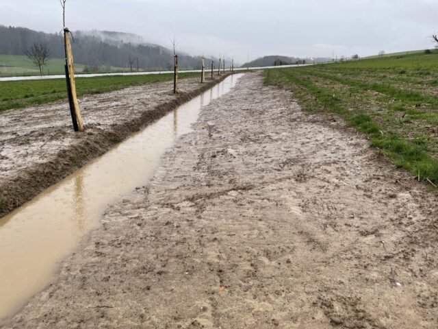 Diese pflugfurchenähnlichen Linien dienen dazu, Hangwasser aufzufangen, zu verlangsamen und gleichmäßig über die Fläche zu verteilen. Bei starkem Niederschlag wird überschüssiges Wasser gezielt entlang dieser Linien aus der Fläche geleitet.