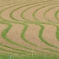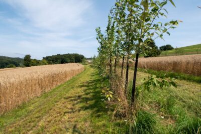 Zwischen Dinkel steht die Keyline mit Bäumen bepflanzt